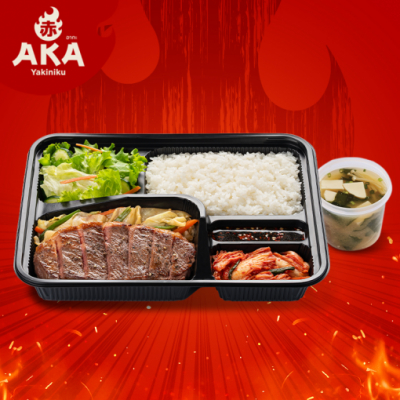 ชุดสเต๊กเนื้อพิคานย่า เสิร์ฟพร้อม ข้าวญี่ปุ่น ซุปมิโสะ สลัด และกิมจิ