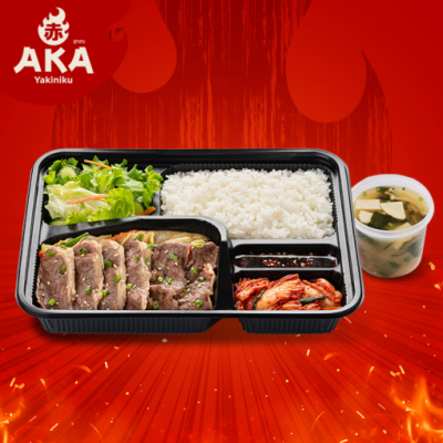 ชุดข้าวยากินิกุเนื้อ เสิร์ฟพร้อม ข้าวญี่ปุ่น ซุปมิโสะ สลัด และกิมจิ