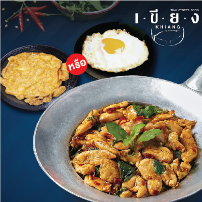 ข้าวกะเพราไก่ชิ้น + ไข่เจียวหรือไข่ดาว