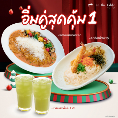 สปาเก็ตตินี่ครีมไข่กุ้ง +ไก่ทอดชนิทเซลพามิจีนา + ชาเขียวข้าวคั่ว (เย็น) x 2