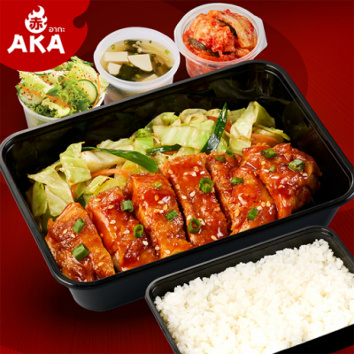 ชุดไก่สไปซี่โกชูจัง เสิร์ฟพร้อม ข้าวญี่ปุ่น ซุปมิโสะ สลัด และ กิมจิ