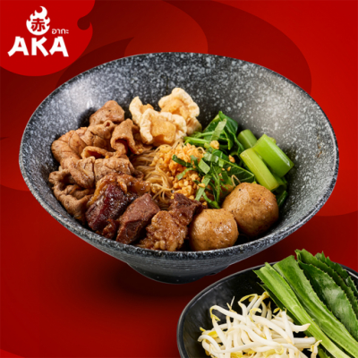ก๋วยเตี๋ยวเรือเนื้อรวม(แห้ง) เสิร์ฟพร้อม เนื้อน่องลาย เนื้อตุ๋น ลูกชิ้น ผักชีฝรั่งและถั่วงอก
