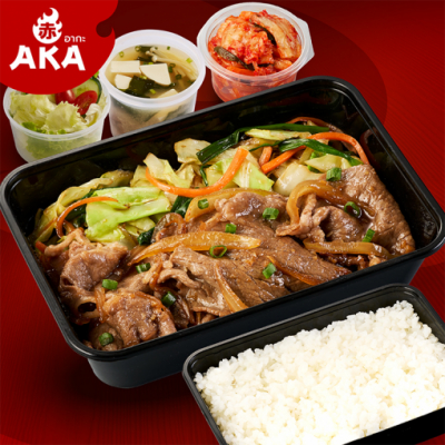ชุดเนื้อสันคอชาร์โรเลส์สุกี้ยากี้ เสิร์ฟพร้อม ข้าวญี่ปุ่น ซุปมิโสะ สลัด และกิมจิ