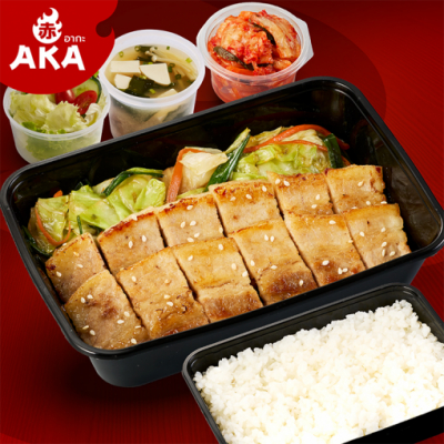 ชุดหมูย่างเกาหลี เสิร์ฟพร้อม ข้าวญี่ปุ่น ซุปมิโสะ สลัด และกิมจิ